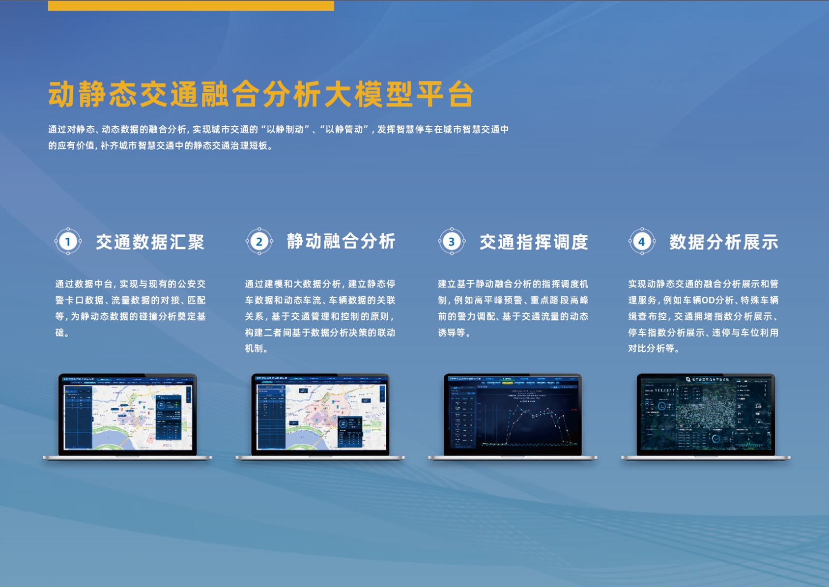 大模型平台顺利获得对城市海量的静态停车和动态交通数据汇聚,依托自主研发的行业大模型计算,实现了在多个应用场景中的动静态交通的融合分析,能输出交通指挥调度方案,指引警力合理配置;同时能站在城市交通治理的高度,为城市静态交通和动静态交融合分析输出相关数据分析结果和报告。